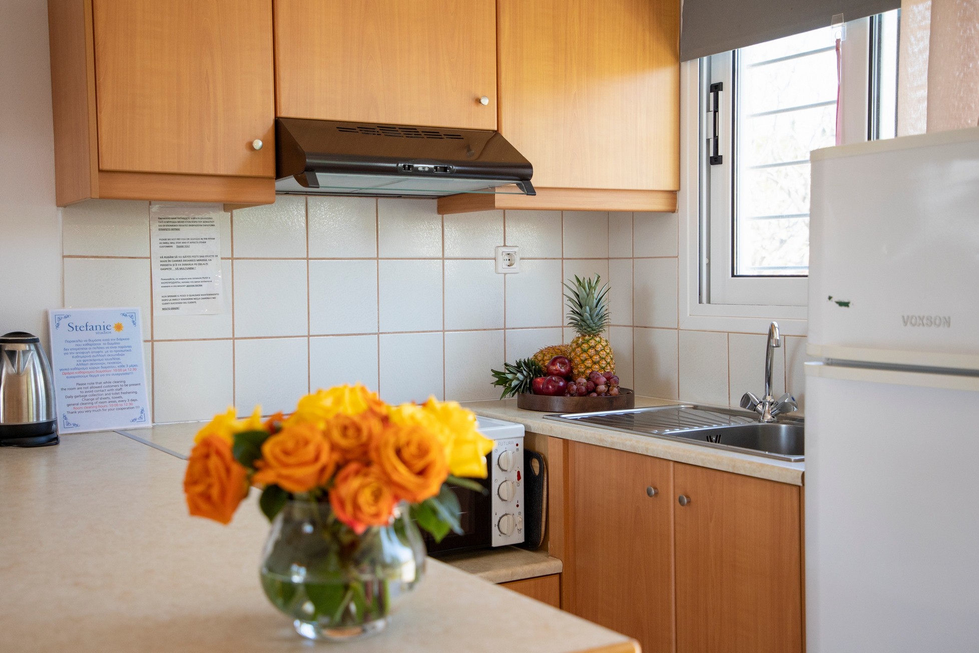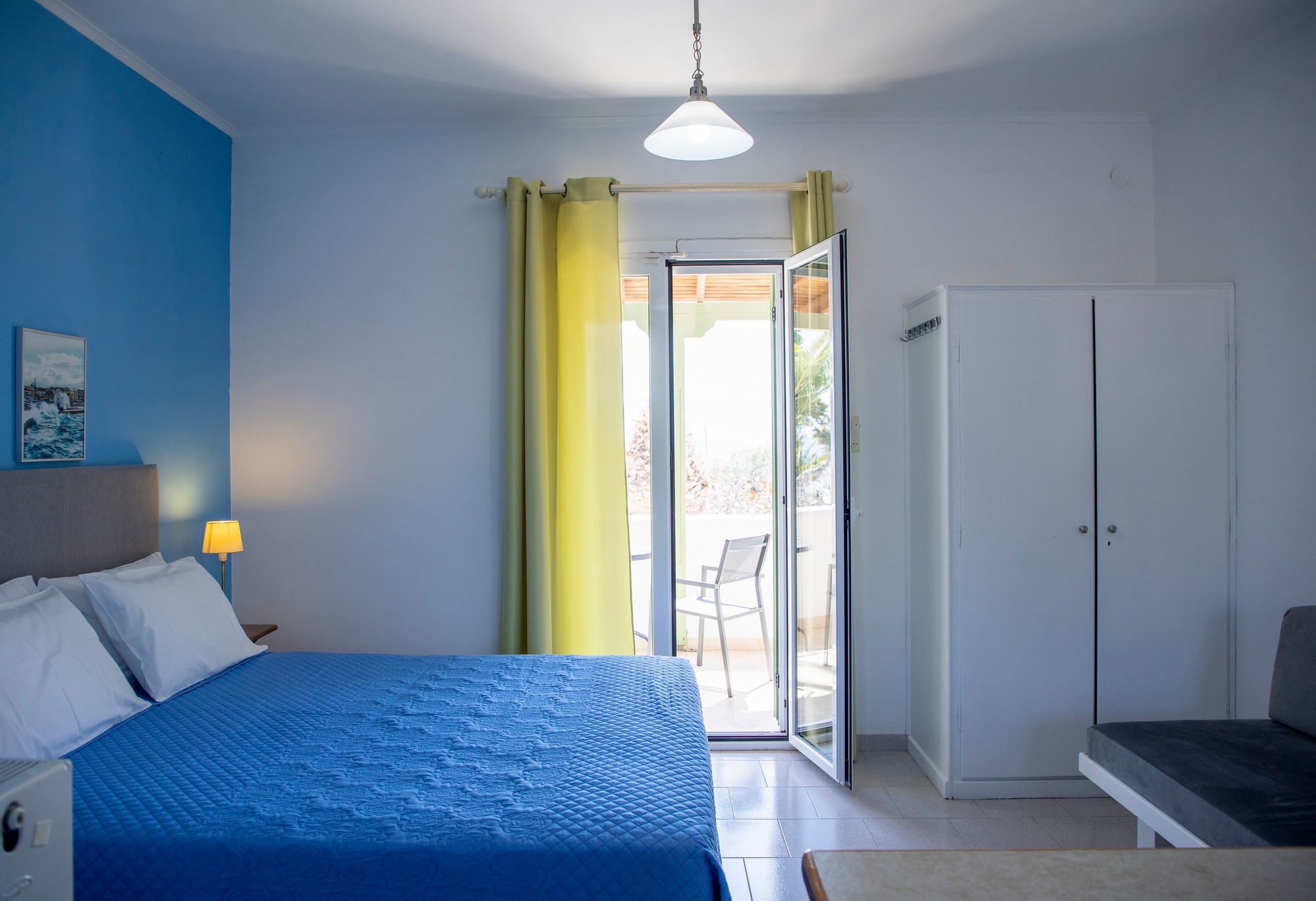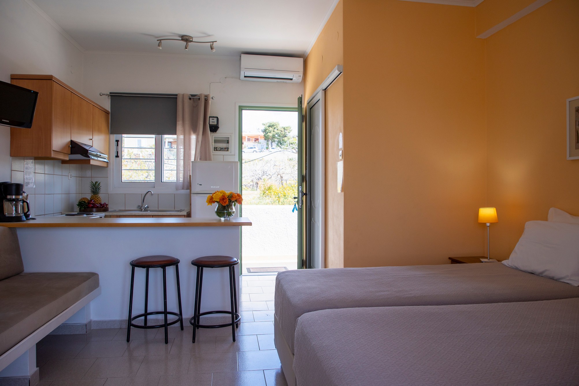Οι επισκέπτες έχουν στη διάθεσή τους κλιματισμό, δωρεάν Wi-Fi, ψυγείο και χώρο τραπεζαρίας, ενώ το μεγάλο μπαλκόνι προσφέρει υπέροχη θέα προς τη θάλασσα, δημιουργώντας την ιδανική ατμόσφαιρα για στιγμές χαλάρωσης. Για την καλύτερη εξυπηρέτηση των επισκεπτών παρέχεται επίσης καθημερινή καθαριότητα, με αλλαγή σεντονιών κάθε τρεις ημέρες και πετσετών κάθε δύο ημέρες.